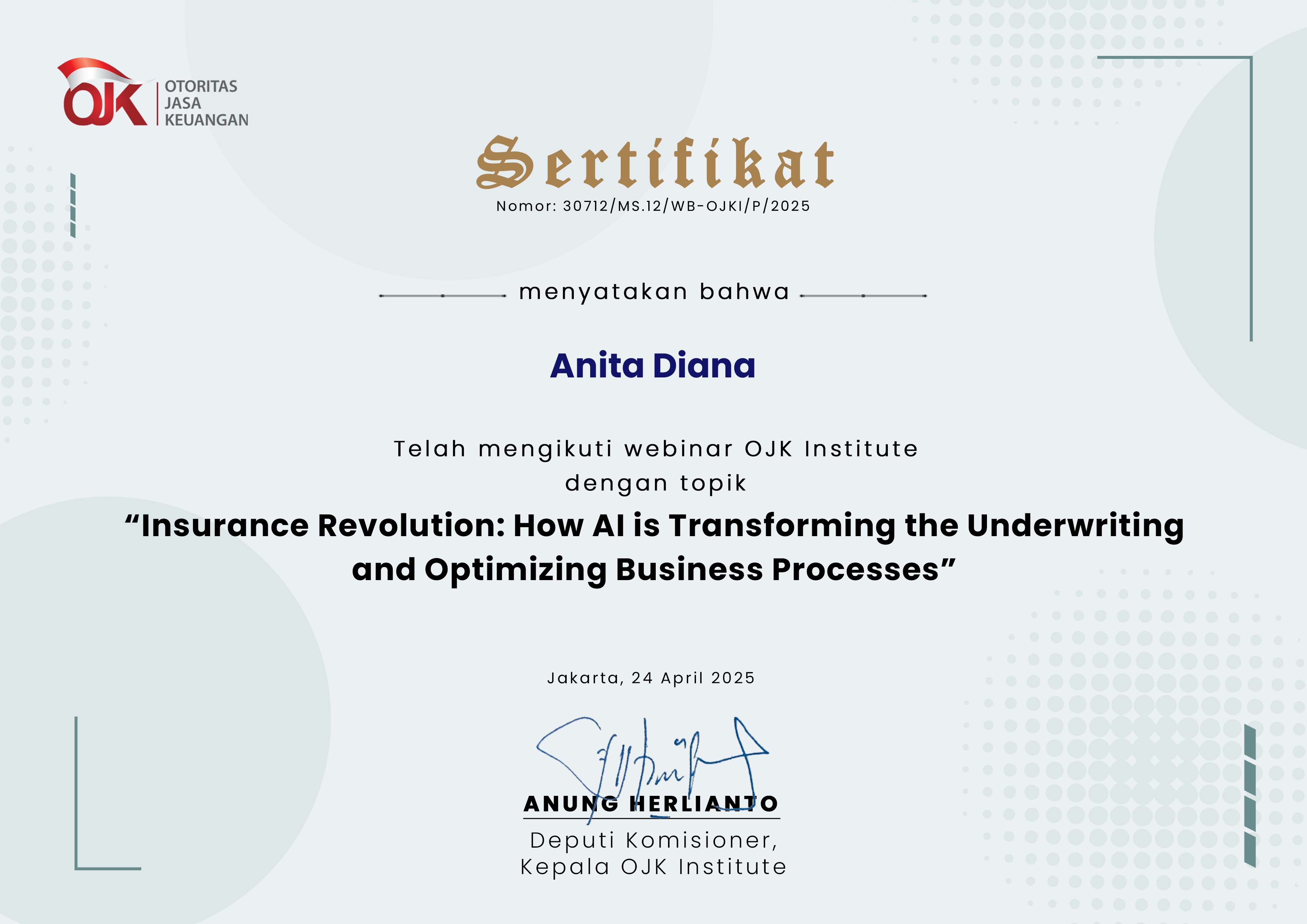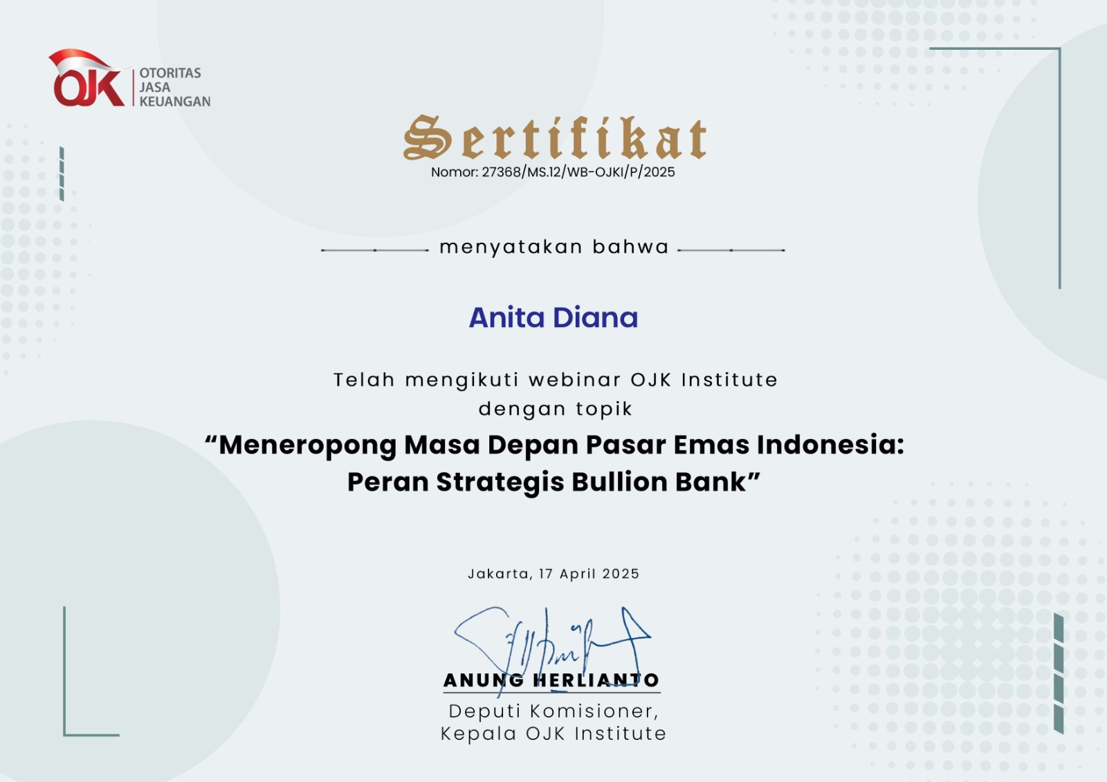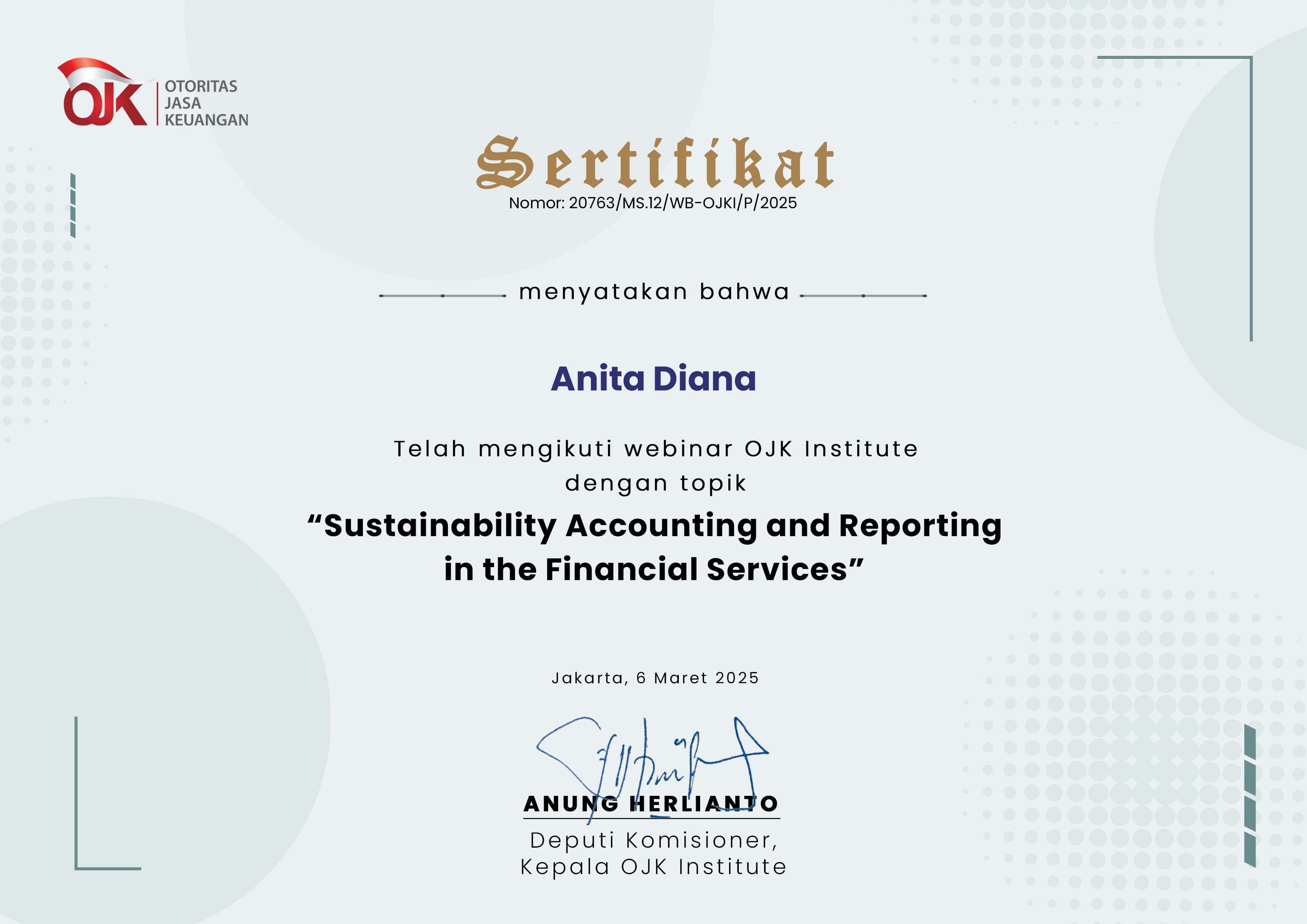 sertifikat Anita Diana